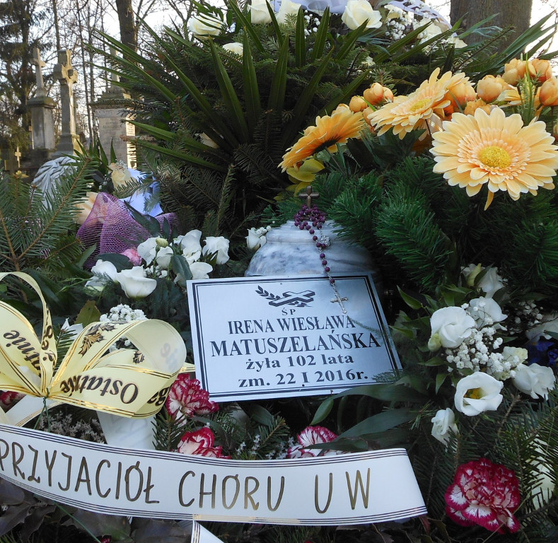 Po Mszy żałobnej Rodzina, Bliscy i chórzyści odprowadzili Zmarłą na Cmentarz Powązkowski, gdzie została pochowana w rodzinnym grobowcu.