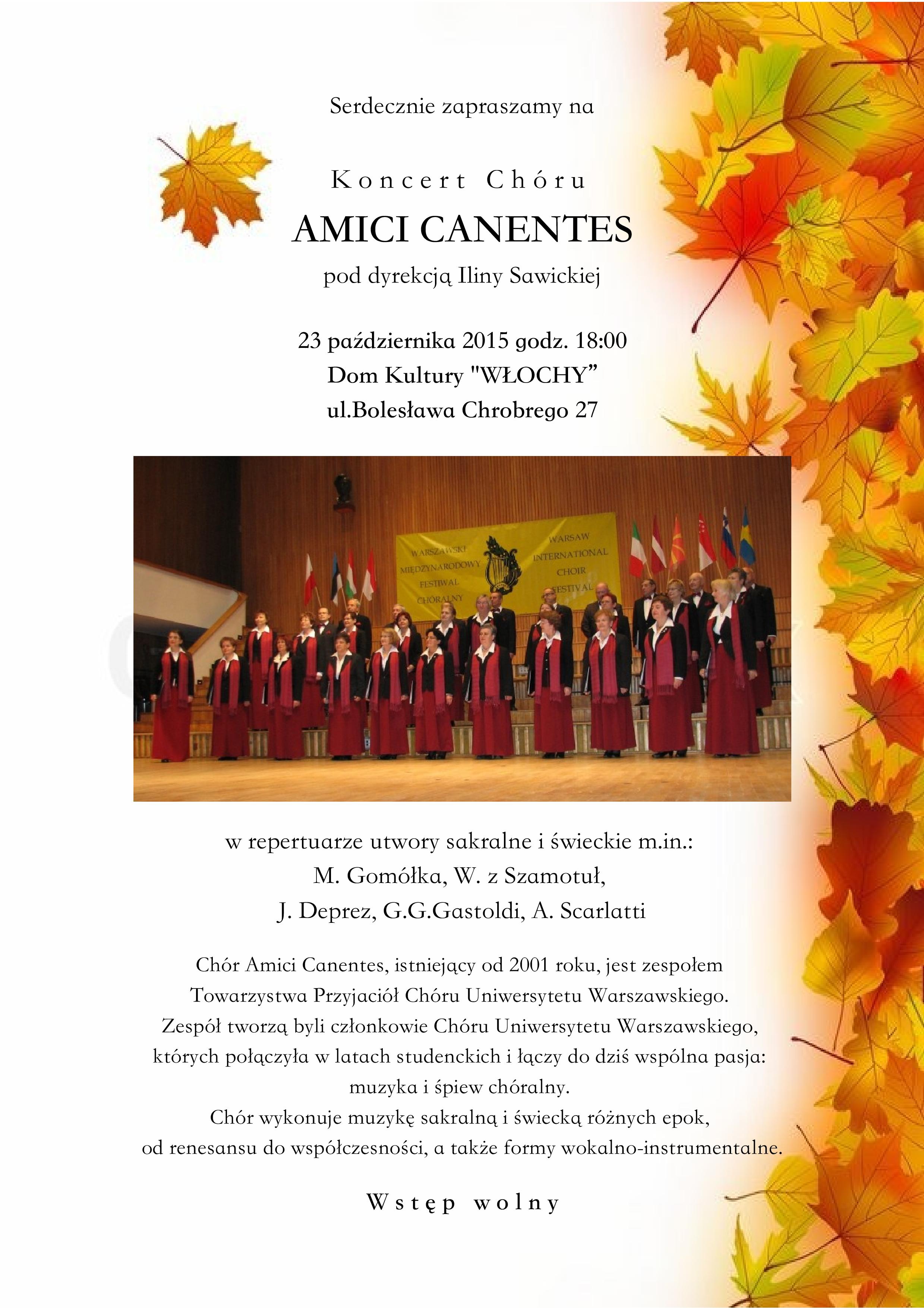 Koncert Chóru Amici Canentes pod dyr. Iliny Sawickiej w Domu Kultury „Włochy” – 23 października 2015