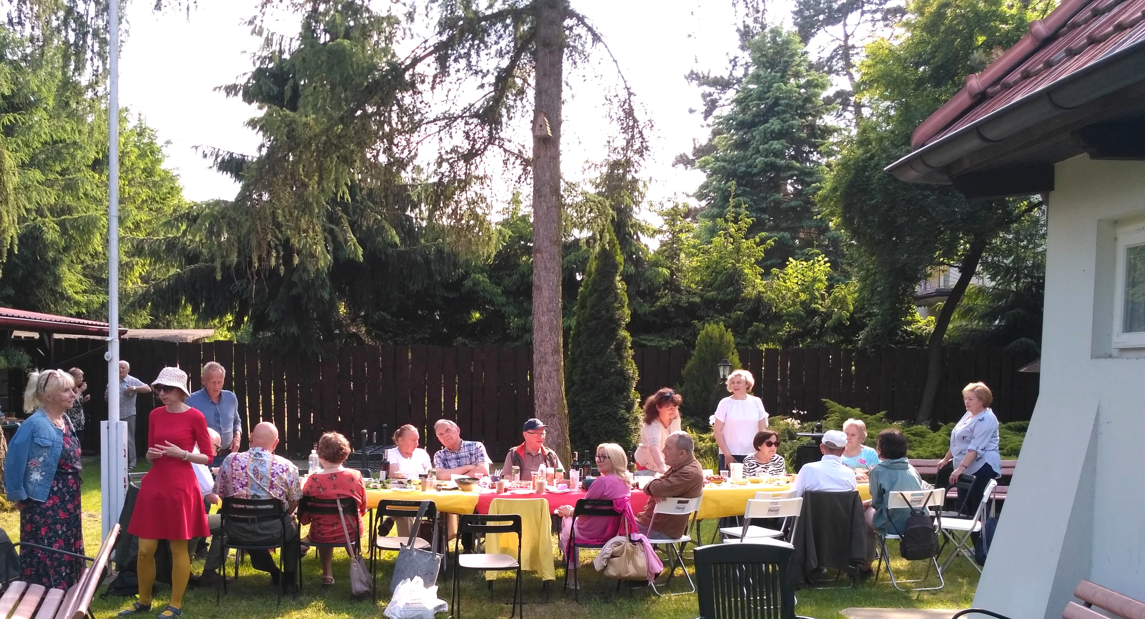 Przyjemnie było zrelaksować się w pięknym, wypielęgnowanym ogrodzie i biesiadować przy suto zastawionych stołach, bo przecież talentów kulinarnych w naszym Towarzystwie nie brakuje. Oczywiście były też śpiewy do późnych godzin wieczornych, do których jak zawsze chętnie dołączyły nasze koleżanki z Towarzystwa Przyjaciół Brwinowa - Krysia i Grażynka.