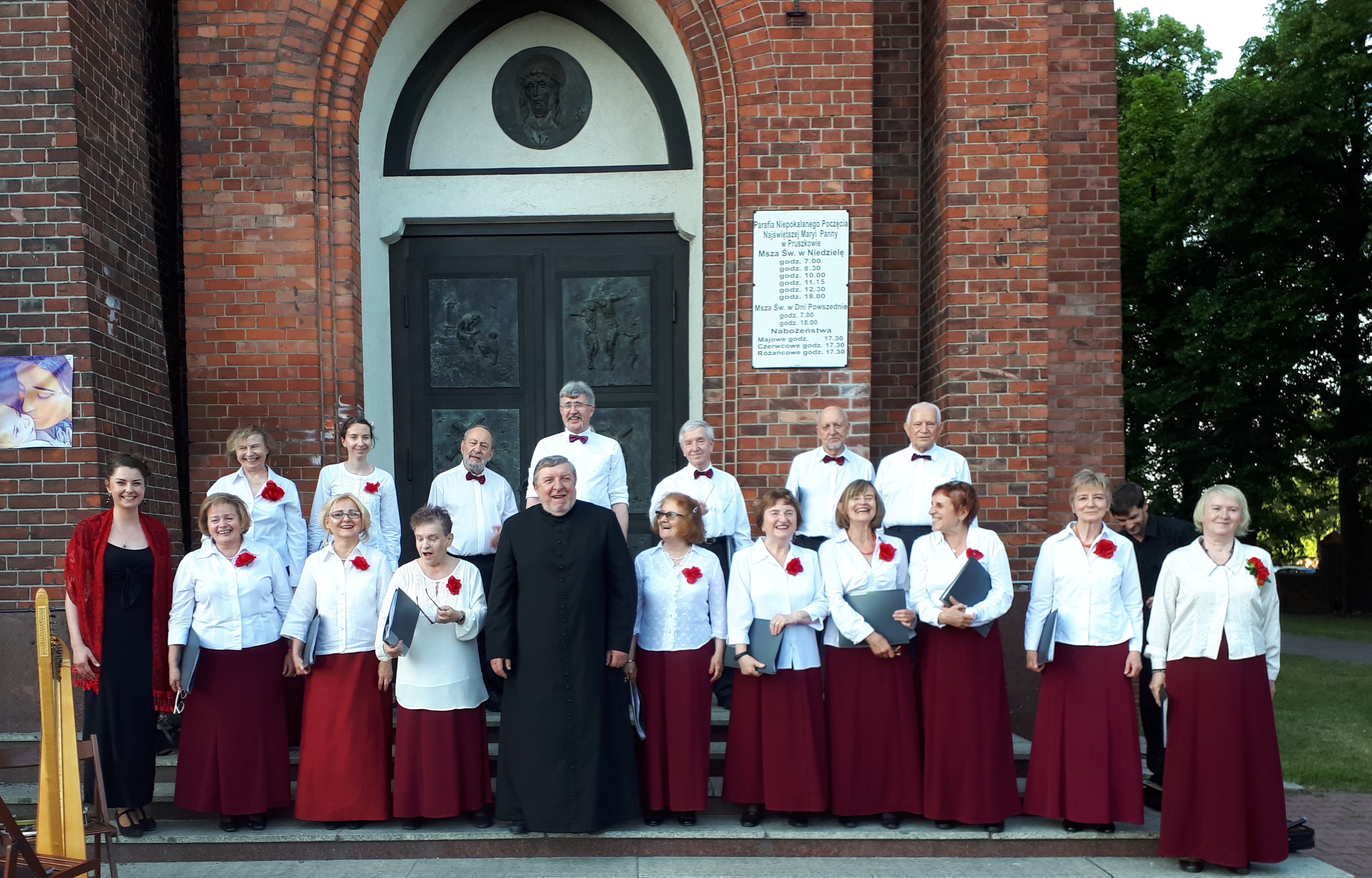 Wśród publiczności, licznej jak na tę porę, znajdowała się profesor Uniwersytetu Muzycznego Fryderyka Chopina w Warszawie, pani Ewa Marchwicka, promotorka naszej dyrygentki Iliny Sawickiej, akompaniującej tym razem pięknie na harfie. Dyrygował nami Jerzy, prowadząc oba koncerty i towarzysząc nam na różnych instrumentach.