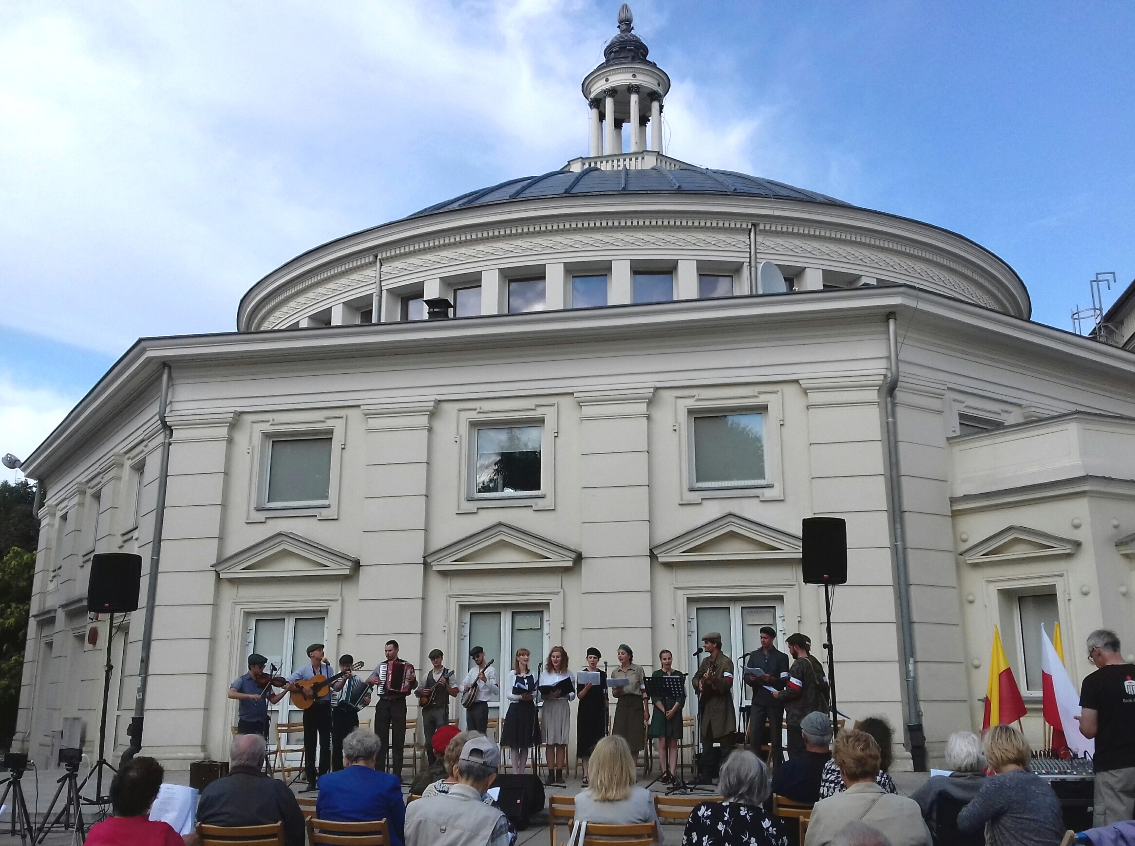 W Parku Żywiciela na Żoliborzu odbyło się 2 sierpnia 2021 wspólne śpiewanie pieśni powstańczych w 77. rocznicę wybuchu Powstania Warszawskiego. Wykonawcami byli: Kapela Sztajer i Grupa Retro Sawa, w której wystąpili Dyrygenci Chóru Amici Canentes: Ilina Sawicka (śpiew i recytacje poezji) oraz Jerzy Sawicki (akompaniament i recytacje). Licznie zgromadzeni uczestnicy uroczystości, wśród nich chórzyści Amici Canentes, otrzymali program ze słowami wykonywanych utworów. Dziękujemy naszym Dyrygentom za zaproszenie nas do wspólnego śpiewania wzruszających pieśni powstańczych. Organizatorzy uhonorowali uczestnika Powstania Warszawskiego, przybyłego na uroczystość. (M.L.)
